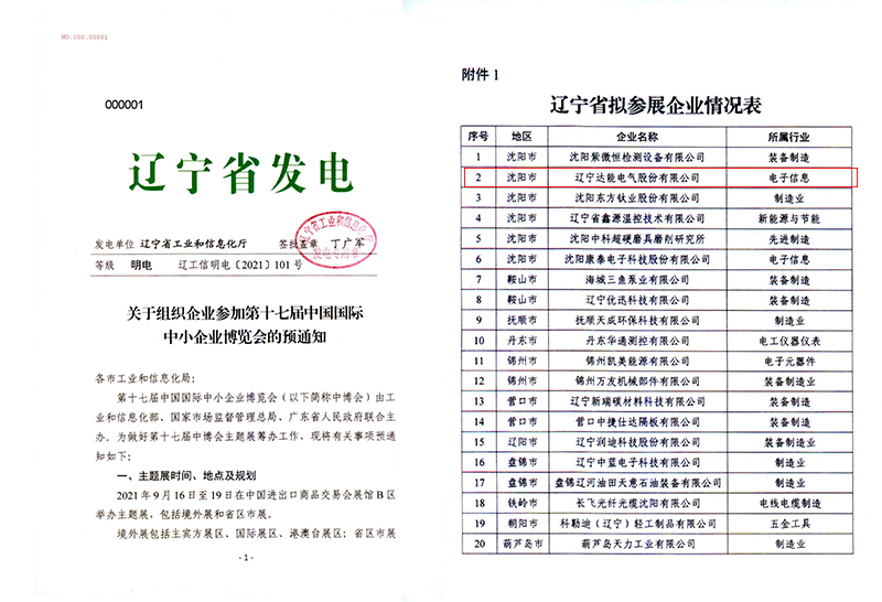 達(dá)能電氣成功入選第十七屆中博會(huì)遼寧省展區(qū)名錄,作為“專精特新”企業(yè)(電子信息類)參展。達(dá)能電氣集團(tuán)是國(guó)家級(jí)專精特新“小巨人”企業(yè),截止到2021年3月,遼寧省共有國(guó)家級(jí)專精特新“小巨人”企業(yè)75家,沈陽(yáng)共17家。達(dá)能電氣專精特新產(chǎn)品包括電力隧道安全監(jiān)測(cè)系統(tǒng)、智能變電站輔助預(yù)警、分布式光纖測(cè)溫主機(jī)、智能電子井蓋、電纜局部放電監(jiān)測(cè)裝置等。