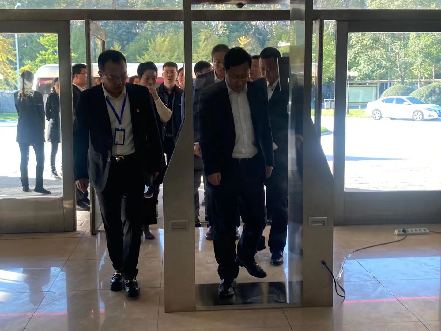 在公司正門,由達能電安全產(chǎn)業(yè)研究院研發(fā)的抗疫利器—智能測溫門吸引了閆書記,閆書記穿過測溫門,切身感受測溫效果,體驗智能水平。達能董事長高藝表示,該款產(chǎn)品是達能電氣在2020年初疫情期間重點研發(fā)的智能抗疫產(chǎn)品,達能電氣積極踐行企業(yè)使命,助力全國抗疫,全力推進科技成果轉(zhuǎn)化,凝聚力量攻破科研難關(guān),產(chǎn)品完成后第一時間投入到疫區(qū)使用并獲得市場認(rèn)可。閆占峰對對達能電氣在疫情期間的擔(dān)當(dāng)和作為給予贊許,對公司的技術(shù)實力給予肯定。