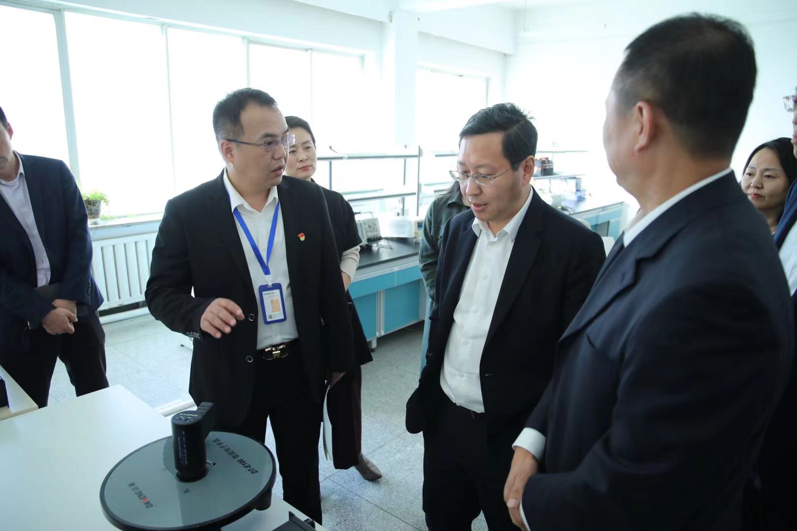 達能電氣總裁關(guān)慧明(左1)為閆書記介紹公司產(chǎn)品