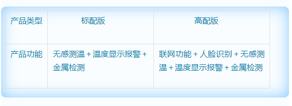 此設(shè)備提供兩種選型,可根據(jù)預算和應用場景選擇不同設(shè)備選型,主要差別在于測溫距離的遠近,同時測溫人員的數(shù)量,熱成像分辨率,聯(lián)網(wǎng)人臉識別等。