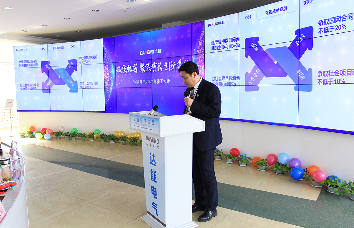 達能電氣董事長高藝發(fā)表“機遇與挑戰(zhàn),聚焦增長,創(chuàng)新提升 — 建功新征程”的重要講話,回顧2020年,展望2021年。關(guān)總對2020年面對疫情員工的擔當和盡責表示感謝,對公司2020年逆勢中取得的成績給予肯定。高總從持續(xù)推進的科技創(chuàng)新、因勢而變的營銷動作、以客戶為本的項目服務等方面對2020年工作進行總結(jié)。并對不足之處進行分析闡述,號召大家要敢于直面問題,有破解困境的勇氣與不甘失敗的斗志!結(jié)合2021年的宏觀環(huán)境和行業(yè)趨勢,及2020年公司不足,高總明確了公司的發(fā)展戰(zhàn)略和工作方向。2021年繼續(xù)堅持“一網(wǎng)兩翼”的戰(zhàn)略思維,集團上下圍繞“一個聚焦,三個開拓,三個完善”來開展工作。