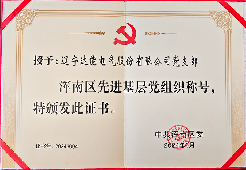 在黨的光輝旗幟下,達(dá)能電氣以其卓越的黨建工作和對(duì)黨的堅(jiān)定忠誠,榮獲了先進(jìn)基層黨組織的崇高稱號(hào),并于近日接受了這一飽含榮耀的榮譽(yù)證書。