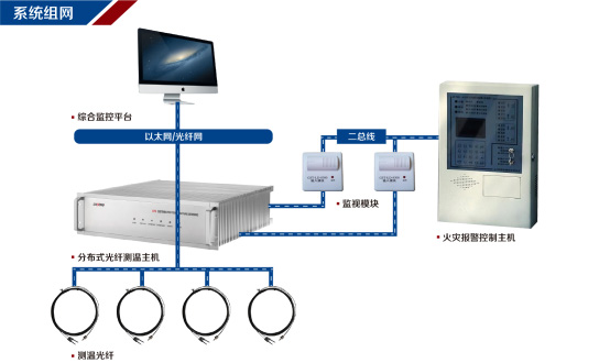 系統(tǒng)描述:分布式光纖測溫儀(DT-412C)是一種光時域溫度監(jiān)測系統(tǒng),是國內(nèi)外應用較成熟的分布式光纖測溫系統(tǒng),該系統(tǒng)由測溫主機(DT-412C)、感溫傳感光纖、DTS后臺分析軟件三部分組成。