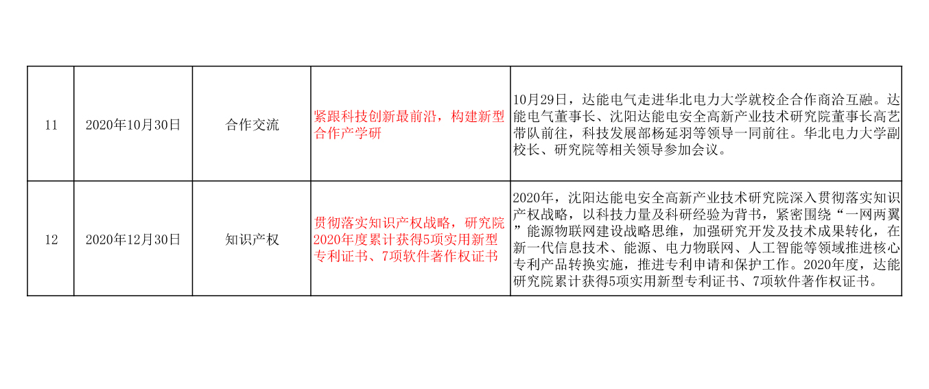 沈陽達能電安全高新產(chǎn)業(yè)技術(shù)研究院有限公司(以下簡稱研究院),作為達能電氣集團旗下專注于電力安全產(chǎn)業(yè)技術(shù)研究的研發(fā)機構(gòu),自成立以來,根據(jù)政府相關(guān)要求,在遼寧省、沈陽市科技局指導(dǎo)下,2020年度各項工作順利有效推進。2020年達能研究院立足電力安全前沿技術(shù),以科研實力及行業(yè)經(jīng)驗為背書,積極發(fā)揮研究院技術(shù)優(yōu)勢,廣泛吸納優(yōu)秀技術(shù)人員。2020年研究院圍繞產(chǎn)品研發(fā)、科研公關(guān)、科技成果轉(zhuǎn)化、知識產(chǎn)權(quán)戰(zhàn)略、技術(shù)交流、產(chǎn)學(xué)研互動等方面積極開展工作。