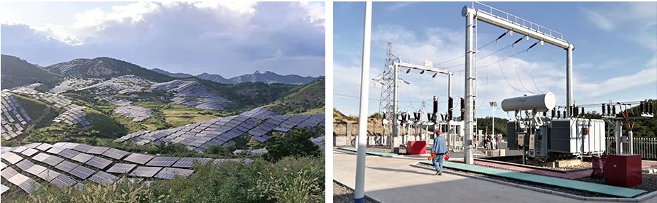 YH5W-9∕250型避雷器三支;35千伏側(cè)6回出線經(jīng)高壓室35千伏成套開(kāi)關(guān)設(shè)備與光伏區(qū)35千伏線路接駁。